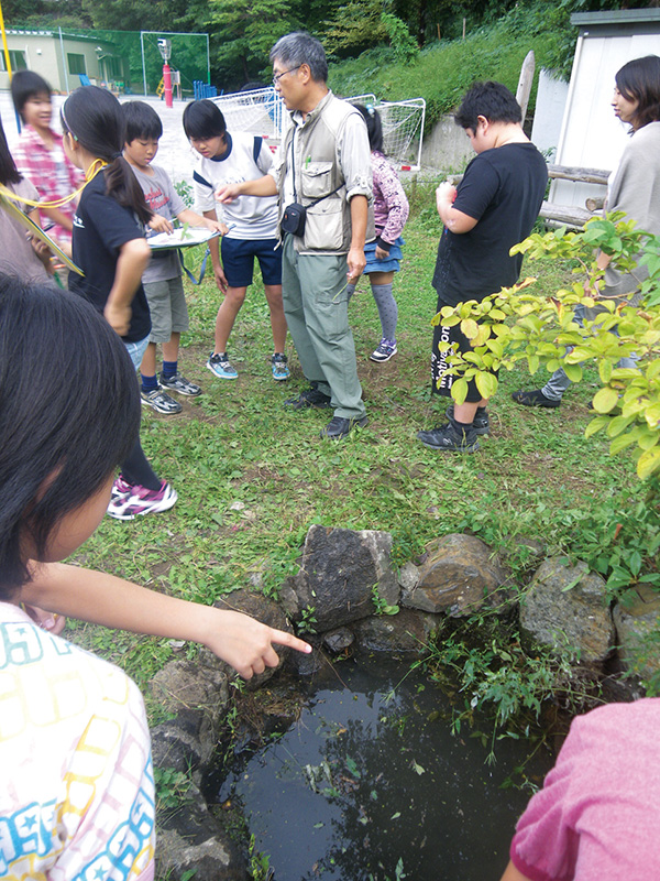 折戸川の水質調査をした後、ザリガニなどの外敵を捕まえる「ホタル守り隊」や、川を清掃する「かがやく水守り隊」など自分たちの考えたチームに分かれて、活動を行うんだ。