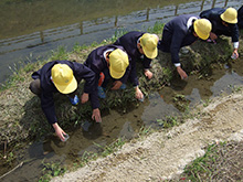 春にホタル小屋やホタル池の清掃を行っているよ。