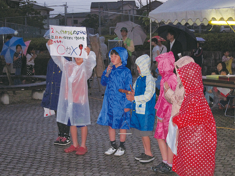 ホタルについて知ってもらうために全校のみんなにPRしたり、小垣江公園のホタル祭りで地域の方々にもPRをしたりしているよ。