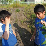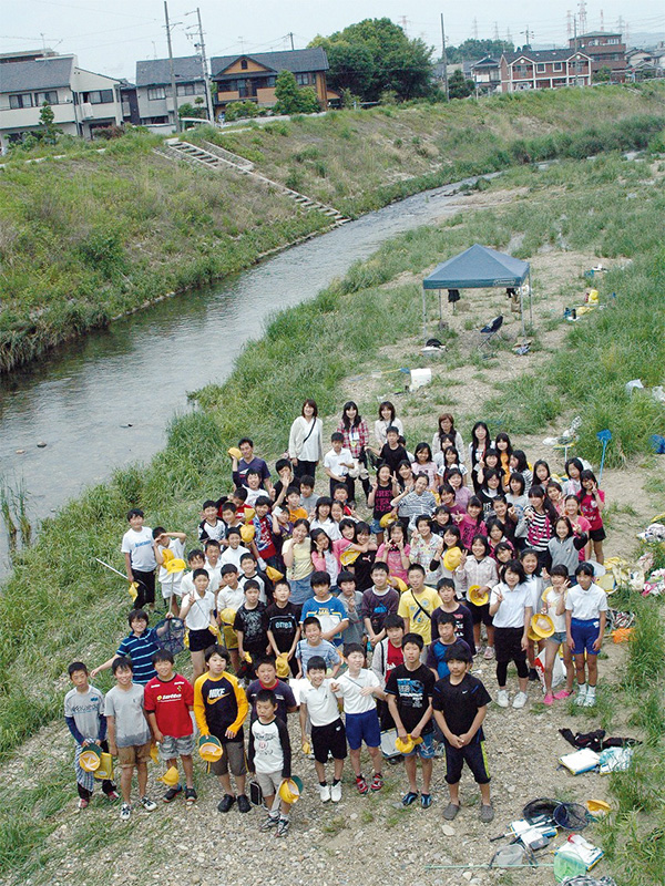 篠原小学校がある愛知県と言えば、2010年にCOP10(生物多様性条約第10回締約国会議)が開催された歴史に残る土地だ。篠原小学校では、COP10がきっかけとなって、当時の5年生が総合学習で自然環境を勉強することになったそうだよ。そのフィールドとして活用したのが、学校の目の前を流れる内津川だ。自然が残るように整備された川で、清掃や自然観察などを始めたんだ。また、もっといろいろなことを学ぼうと、バケツでのイネ栽培や、ネーチャーゲーム、緑のカーテン作りなどにも取り組んだんだよ。