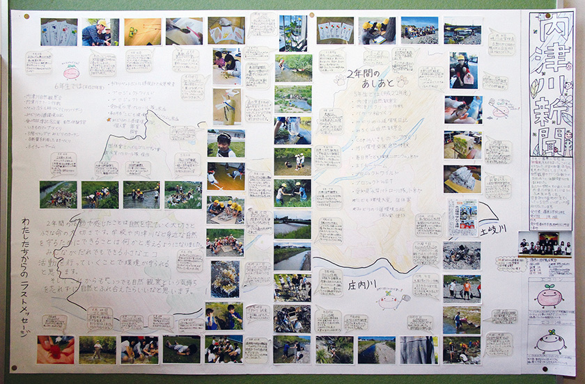 活動の成果をまとめた「内津川新聞」。こどもエコクラブの壁新聞コンテストに応募したんだ。